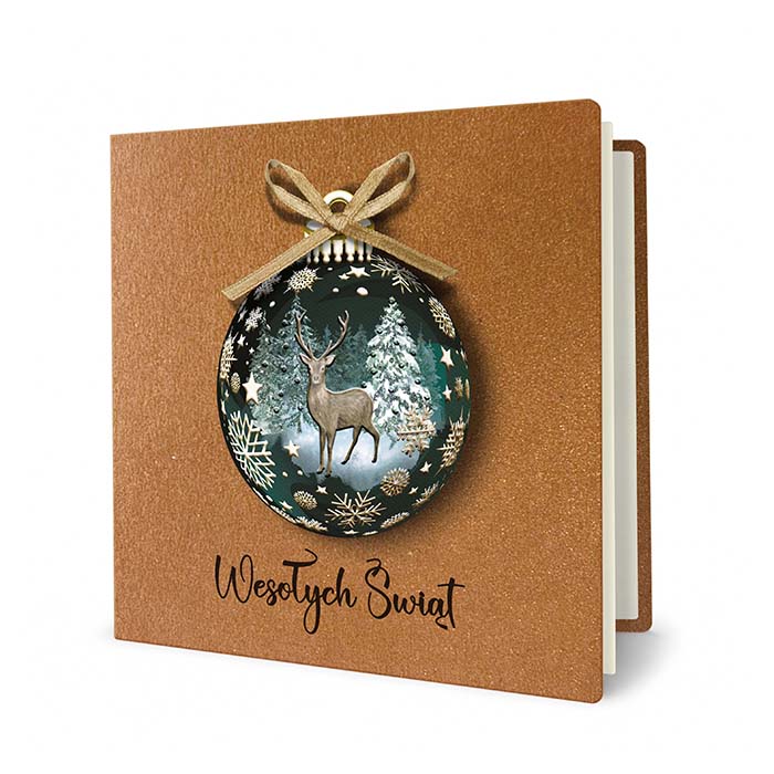 Kartka Świąteczna z Bombką i Reniferem
